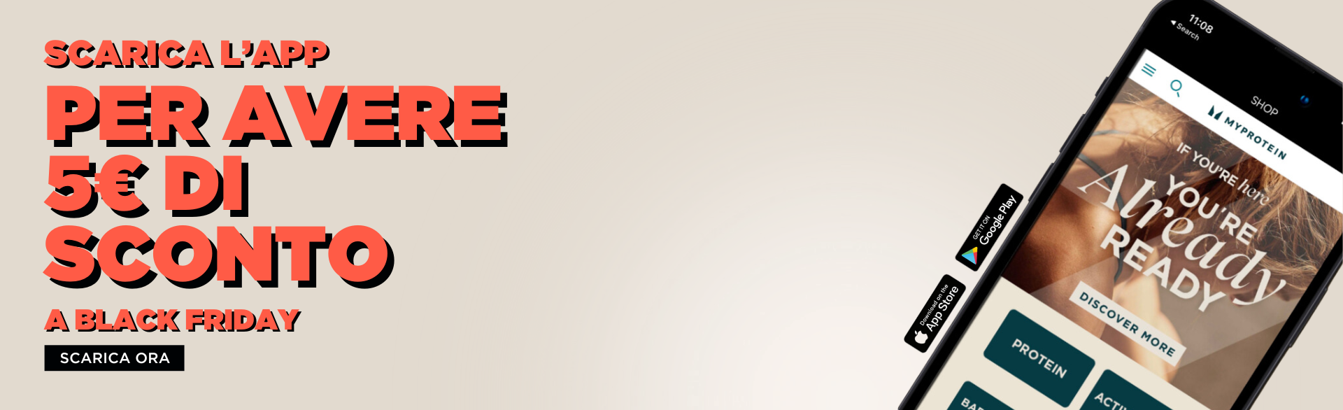 Ricevi 5 € di sconto quando spendi 20 € o più su prodotti su www.myprotein.it. Accedi alla nostra app, aggiungi i tuoi prodotti preferiti al carrello e i 5€ verranno applicati automaticamente.