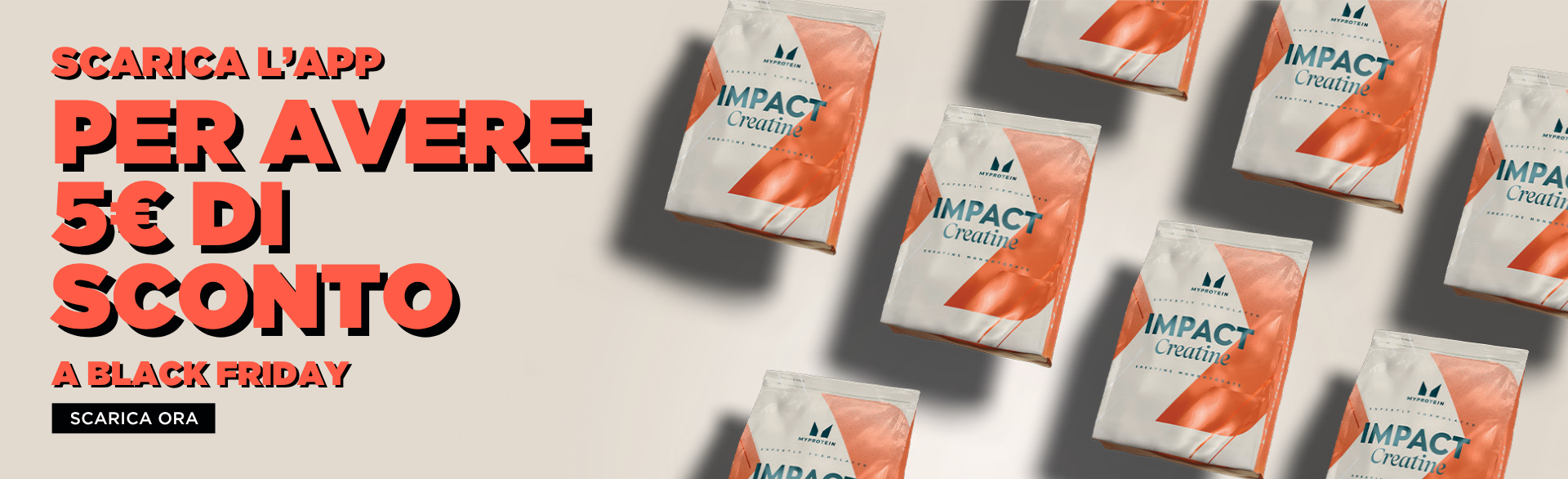 Ricevi 5 € di sconto quando spendi 20 € o più su prodotti su www.myprotein.it. Accedi alla nostra app, aggiungi i tuoi prodotti preferiti al carrello e i 5€ verranno applicati automaticamente.