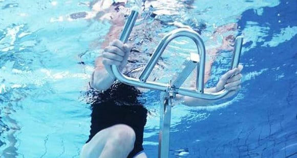 Al lavoro a corpo libero, si possono aggiungere piccoli attrezzi presi in prestito dal nuoto, quali pull-buoy e tavolette, oppure specifici “pesi” da fitness in acqua, cavigliere, cinture apposta per fare esercizi in sospensione (facilitando il galleggiamento e aiutando a concentrarsi sul movimento da effettuare) in acqua alta.