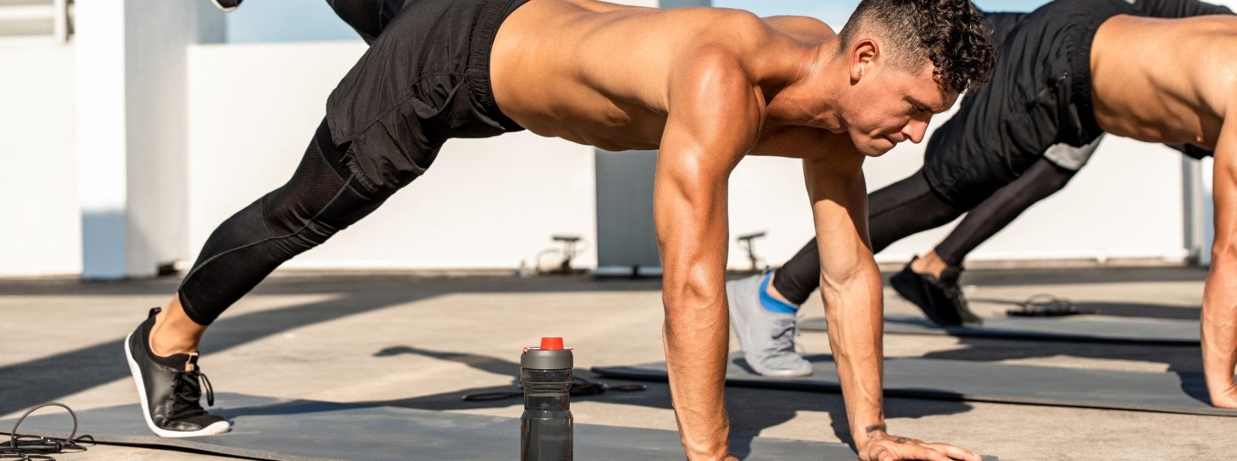 - Mantenendo la presa sulla sbarra, mantenendo il core stretto in modo che la sbarra non rotoli, eseguite le flessioni e completate il burpee.
