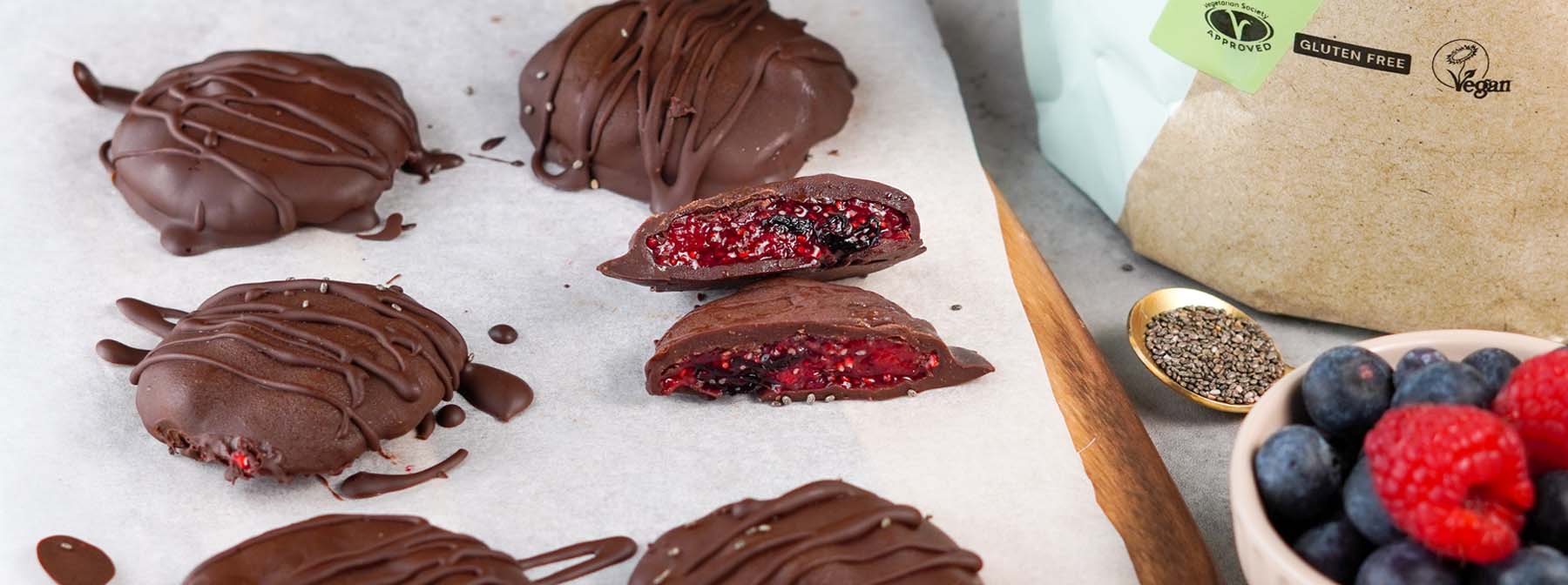 - Togliere i chia bites dal freezer e immergerli nel cioccolato. Utilizzate una forchetta per aiutarvi a coprire tutti i lati. Consiglio: cercate di fare questa parte il più velocemente possibile, perché il cioccolato si solidifica rapidamente.