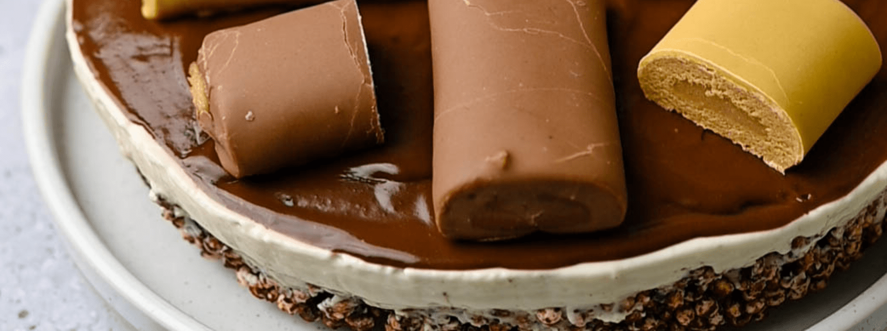 Riponi la teglia in frigorifero e lascia rassodare il dolce per almeno 4 ore. Una volta pronto, rimuovi la teglia dal frigorifero e guarnisci con le barrette Pop Rolls prima di servire la tua cheesecake al caramello e cioccolato.