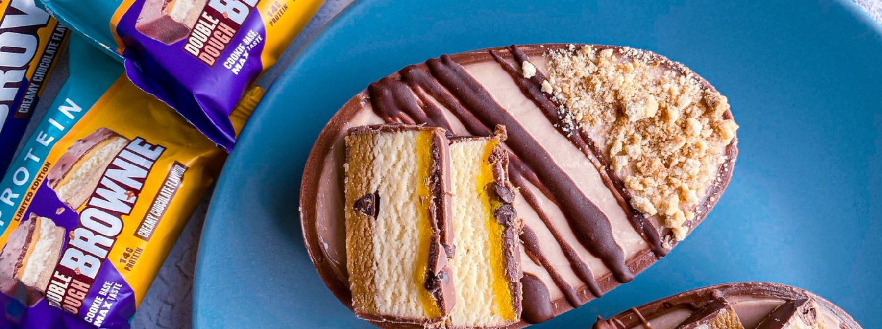 Questa irresistibile ricetta di @healthy_floflo accoglie in un guscio di uovo di cioccolato pasquale un ripieno di formaggio cremoso a basso contenuto di grassi e proteine in polvere Impact Whey Protein (caramello e cioccolato) per fare un pieno di dolcezza senza il sovraccarico di zuccheri e grassi. Il tutto viene poi guarnito con il nostro Double Dough Brownie al gusto di cioccolato che offre ancora più strati di gusto, insieme a 14g di proteine per barretta.