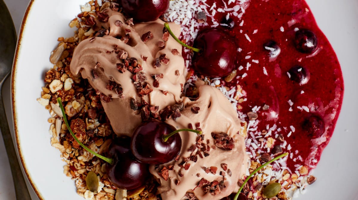 La bellezza è una storia che comincia da dentro. Sentitevi al meglio con questa incredibile ricetta per preparare un golosissimo piatto di salutare gelato servito su un letto di frullato, per un pasto ricco di vitamine, minerali e proteine.