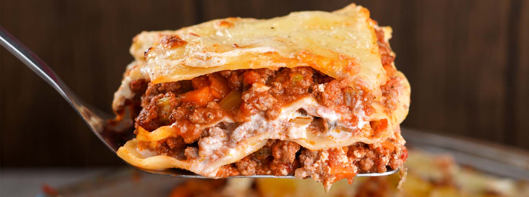 - A questo punto, iniziate a costruire la vostra teglia di lasagne. Trasferite un terzo del composto di macinato sul fondo di una pirofila, quindi aggiungete 2 sfoglie di lasagne. Aggiungete un altro strato di impasto di carne e metà della salsa bianca al formaggio. Infine, aggiungete altri 2 fogli di lasagne, quindi ripetete lo stesso procedimento ancora una volta per utilizzare il macinato e la salsa di formaggio rimanenti.