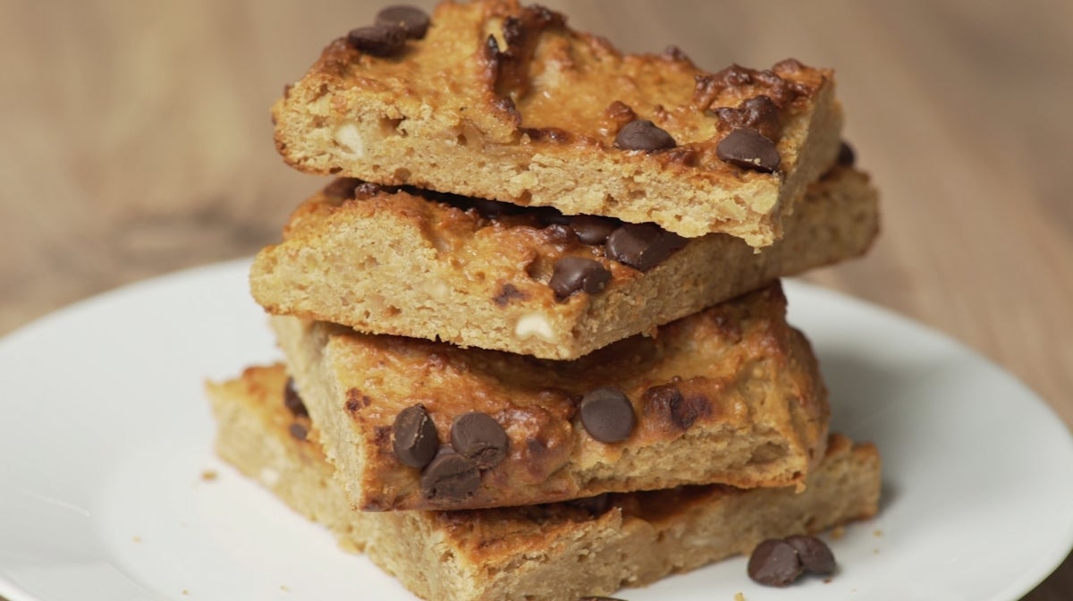 • 1 cucchiaio di Miscela proteica vegana (banana) • 1 scatola di ceci • 30 g di arachidi • ½ cucchiaino. bicarbonato di sodio • 200 g di burro di mandorle • Sciroppo senza zucchero da 200 ml • Manciata di gocce di cioccolato vegane